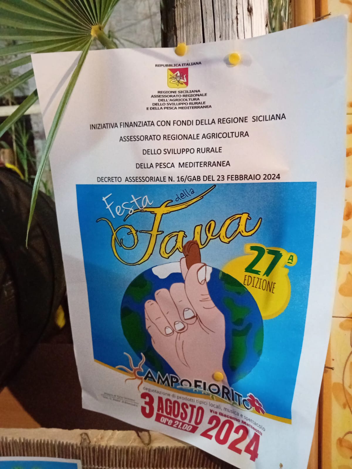 Festa della “FAVA”( Primo SABATO del Mese di AGOSTO) | Sono sviluppate, nel corso principale, tutte le fasi tradizionali di preparazione e consumo della “Fava”. La manifestazione oltre che a fa rivivere una antica tradizione, ha lo scopo di richiamare l’interesse dei turisti sul nostro paese. Per l’organizzazione di tale festa, l’Amministrazione Comunale si avvale della collaborazione di un comitato di cittadini denominato “Gli Amici della Fava”.
